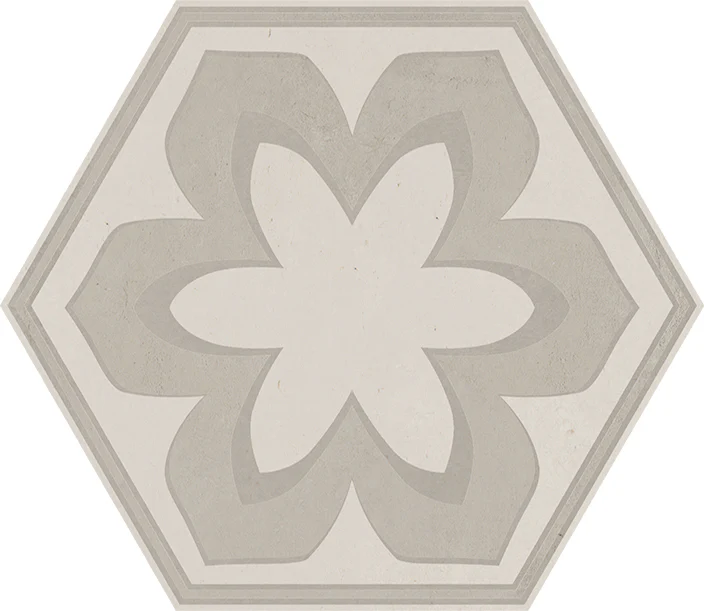 Piastrelle per pavimento in Gres Porcellanato Esagonale, Effetto Cemento con decori misti dal Design Moderno